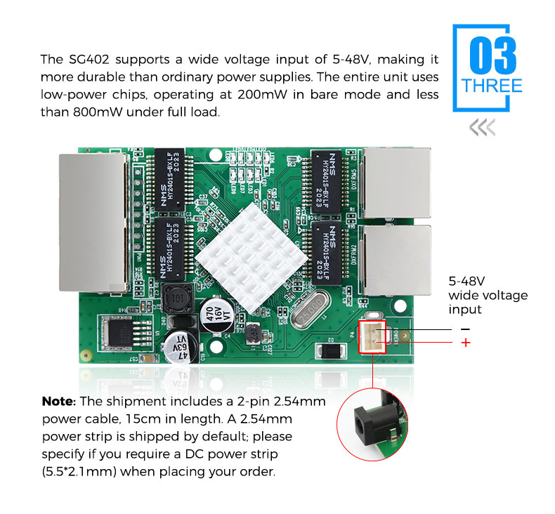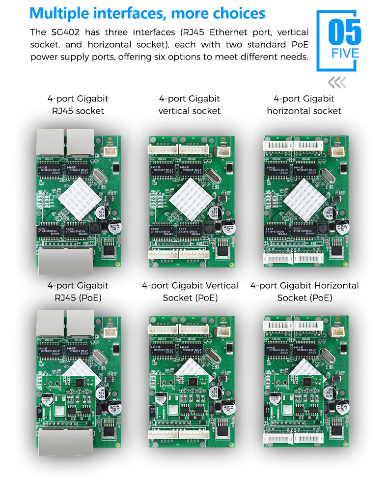 SG402 Unmanaged Full Gigabit PoE Switch Module DC 5-52V Power Supply Switch PCBA
