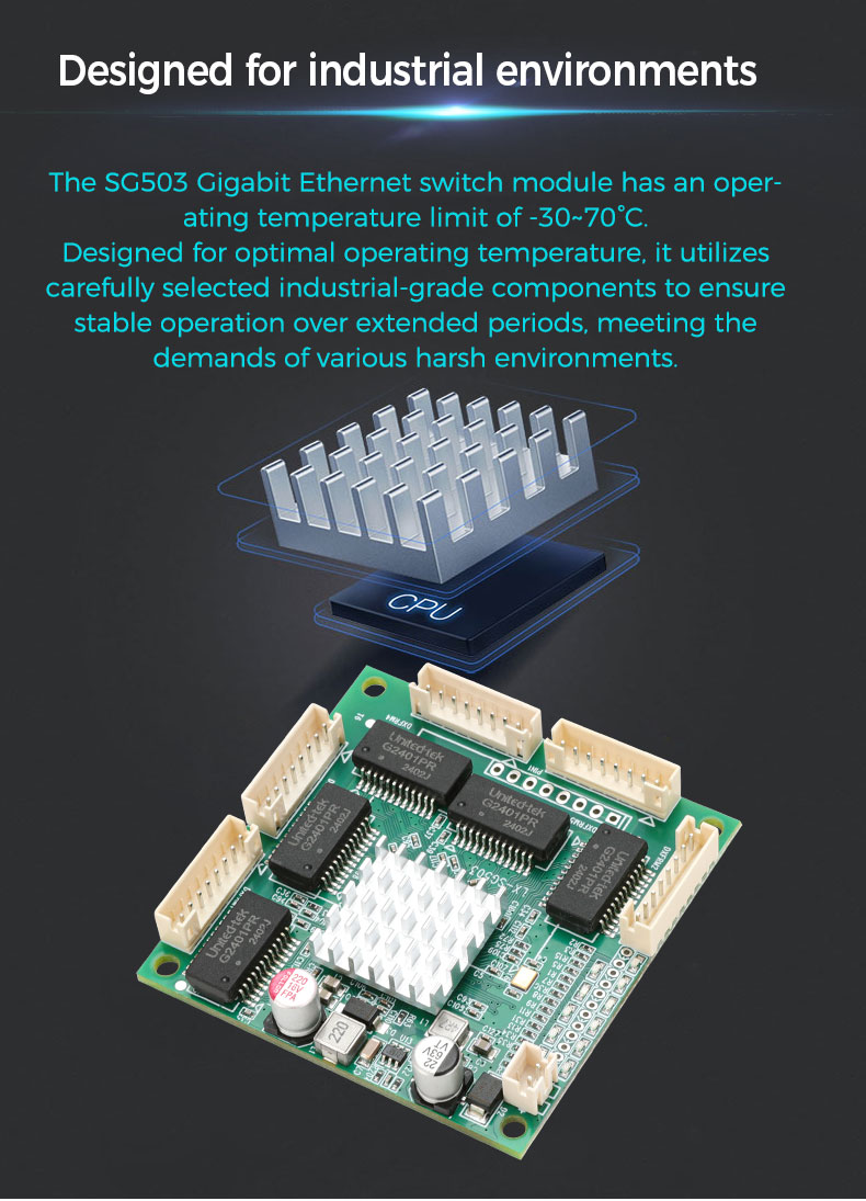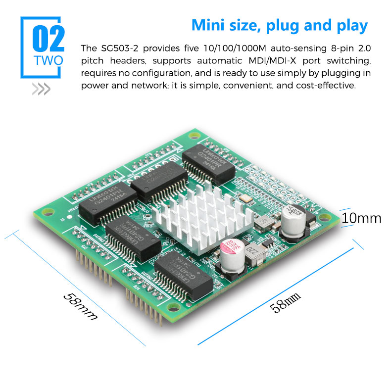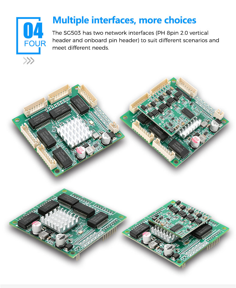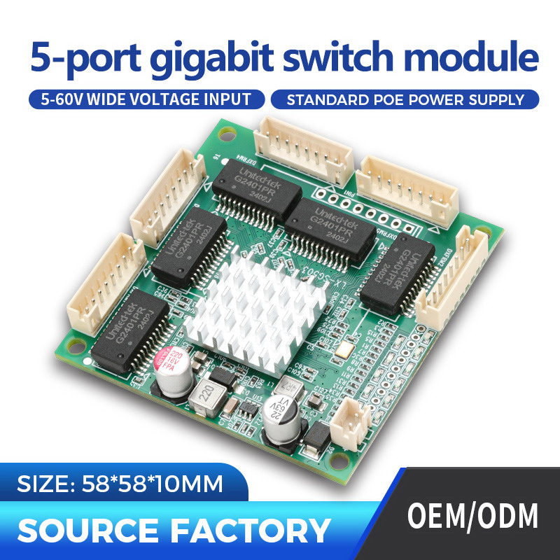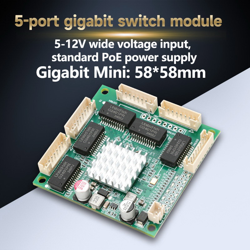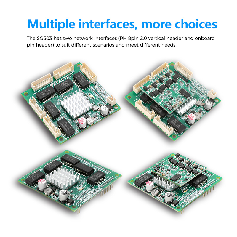 Unmanaged 5 x 10/100/1000M PH2.0mm 8pin ports |