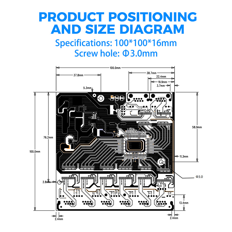 • Module PCBA dimensions: 100*100*16mm.