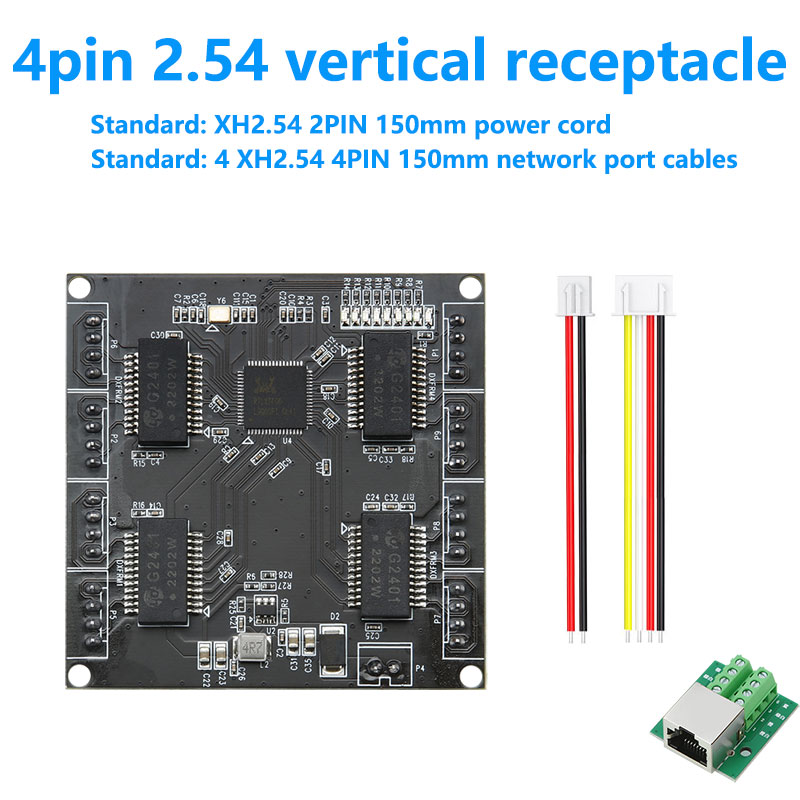 8 x 10/100M Base-T XH2.54mm 4pin socket ports (Data/Power) |