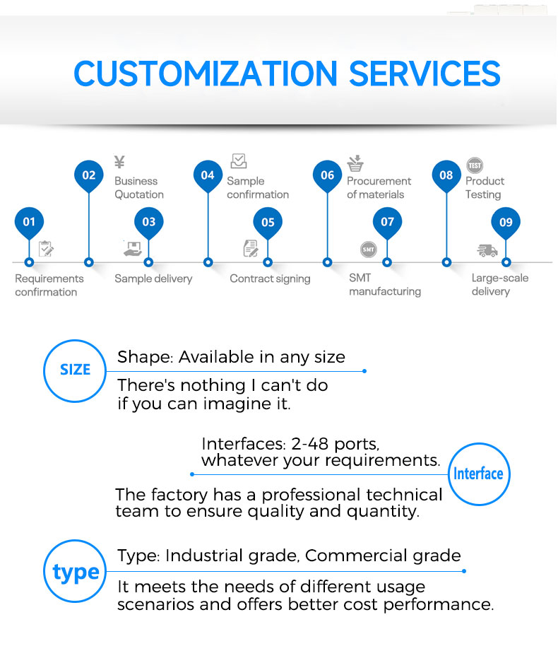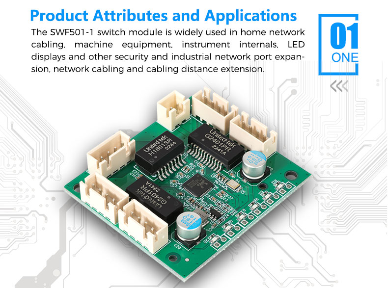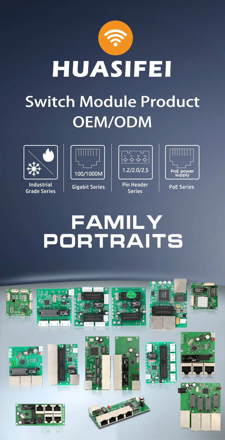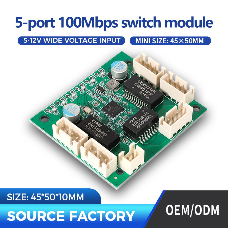 5 x 10/100M Base-T XH2.54mm 4-pin female header ports (Data/Power) |