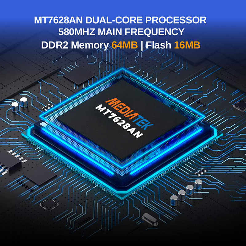 | Hardware specifications | MT7628AN 580MHz DDR2 Memory 64MB FLASH 16MB |