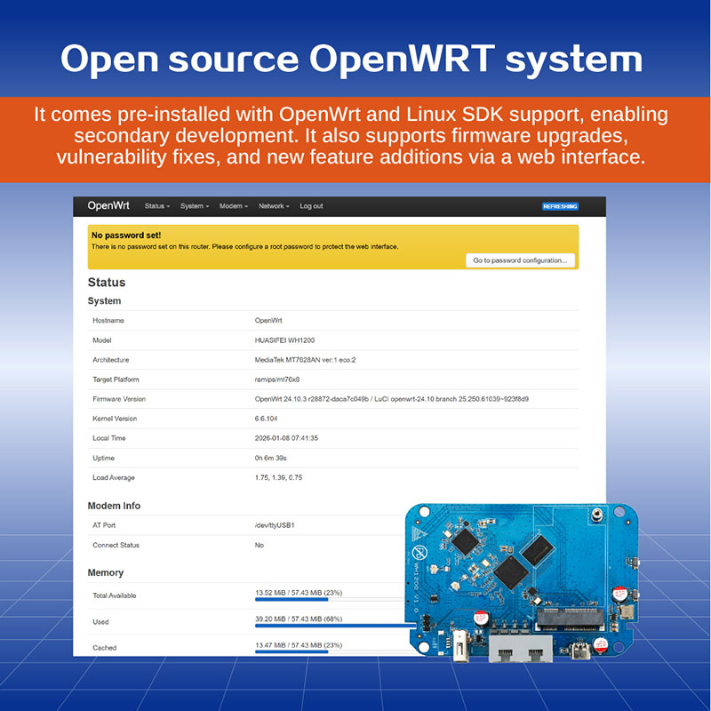 1 * 10/100Mbps WAN port, automatic MDI/MDIX, 1 * USB 2.0 interface 1 * Type-C power interface 1 * Minipcie 4G module interface 1 * Nano SIM card slot |